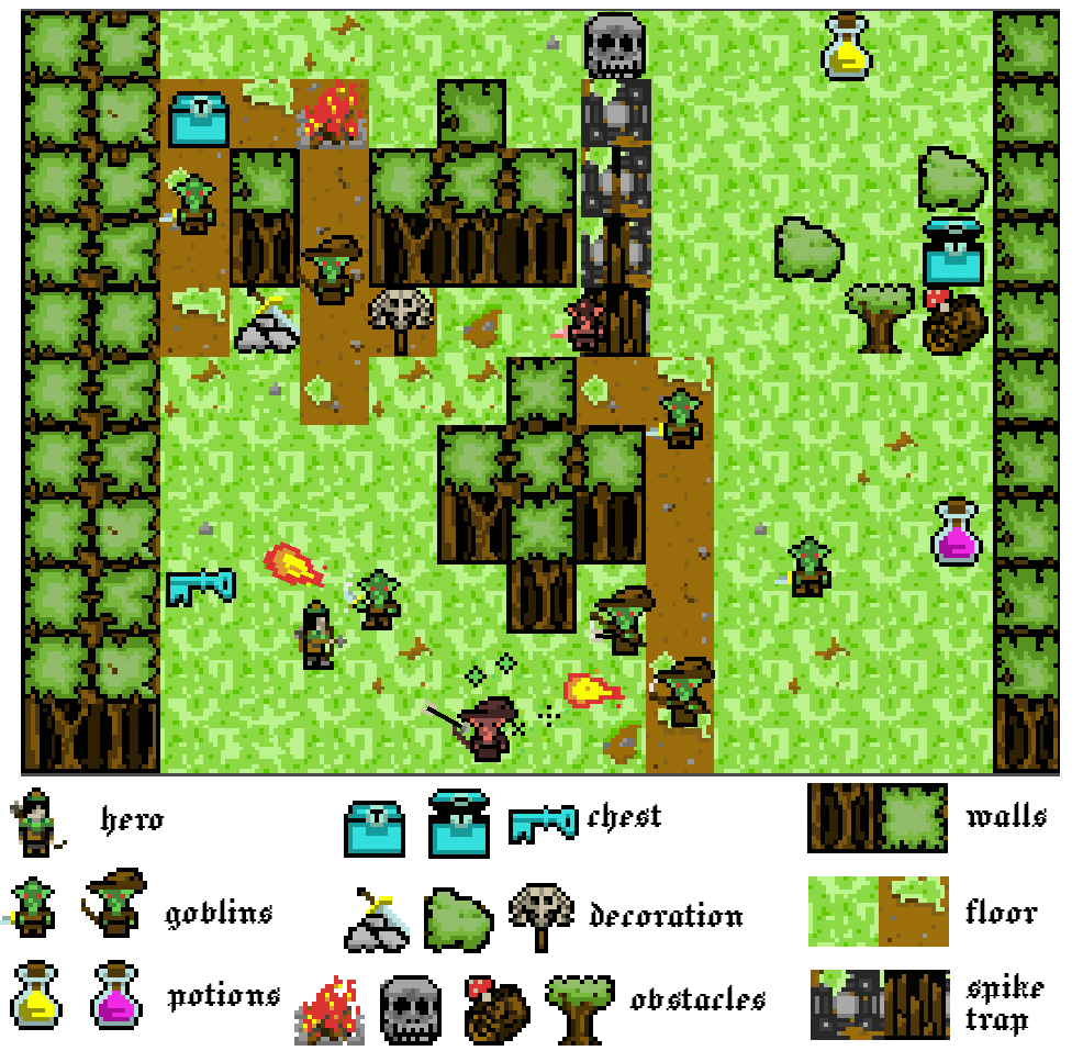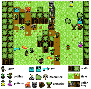 Perfect for dungeon crawlers, roguelikes and top-down RPGs that mix exploration, traps and ranged combat in natural environments.